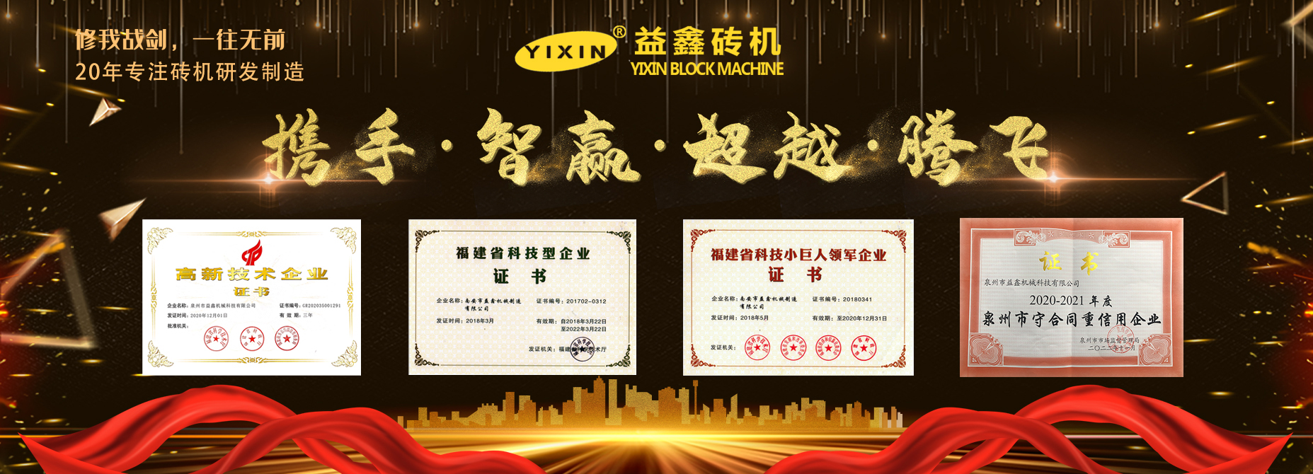 [公司動(dòng)態(tài)] 喜獲殊榮,泉州市益鑫機(jī)械科技有限公司(益鑫磚機(jī))憑借雄厚的技術(shù)實(shí)力,專業(yè)的研發(fā)隊(duì)伍,持續(xù)不斷的創(chuàng)新能力,科學(xué)的企業(yè)管理,榮獲“國(guó)家高新技術(shù)企業(yè)”證書!這標(biāo)志著益鑫磚機(jī)在磚機(jī)制造科技創(chuàng)新能力上得到了國(guó)家層面的充分認(rèn)可與支持,由此正式邁入高新技術(shù)企業(yè)行列。